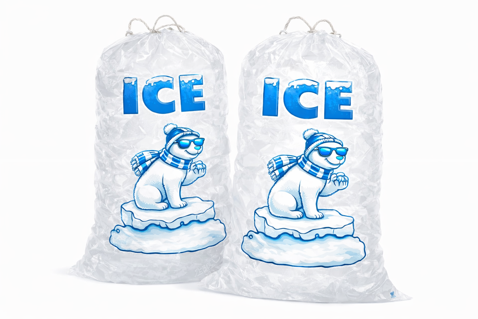 500 Ultra-strong drawstring ice bags per case. Bag size: 13.5" x 28". NO TIES NEEDED! (Graphics may vary).